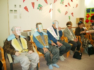 節分は2月3日ですね。はまみの里では1月29日から2月3日までの1週間、豆まきを楽しみました。男性の利用者の方は鬼のお面と羽織を着用しての豆まきです!「鬼は外、福は内!」と大きなかけ声とともに豆をまくと、威勢のよかった鬼も小さくなってしまいました。